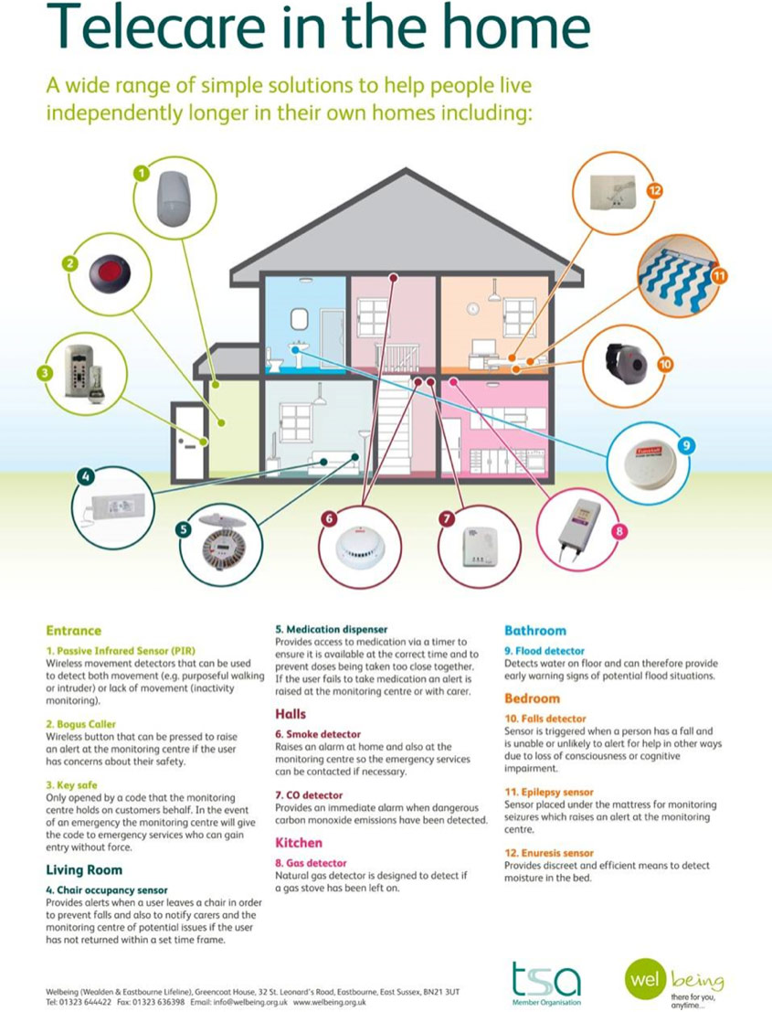 Telecare sensors in the home enable people to remain safe and independent in their own home for longer. Our Telecare House shows the wide range of sensors available. If you would like a demonstration of a Lifeline and sensors or have any additional questions please contact we and we would be delighted to call you initially and/or visit you at your home. You can find our contact details on the front page.